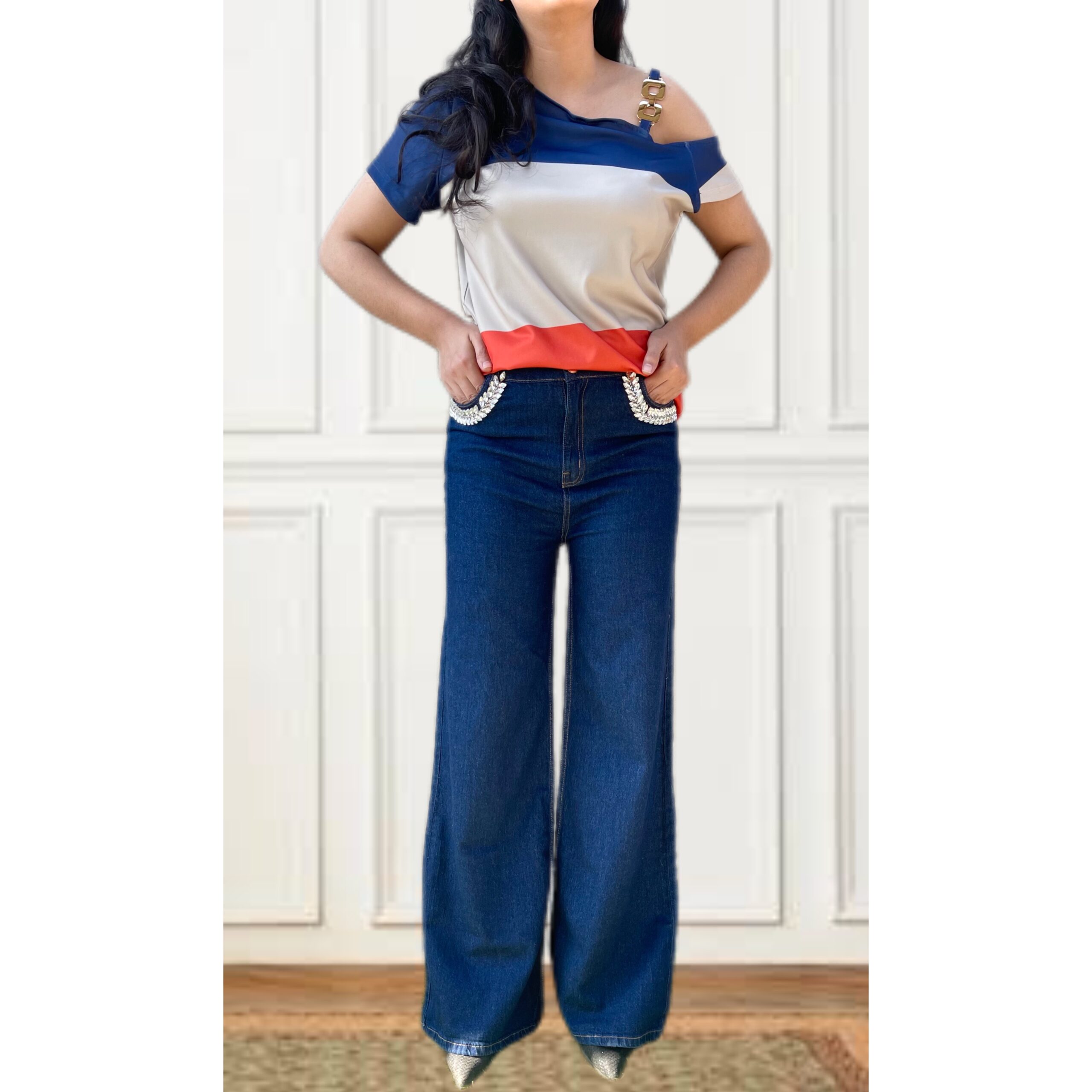 A chic and vibrant off-shoulder top that blends effortless style with bold color blocking. Perfect for casual outings or semi-formal occasions.