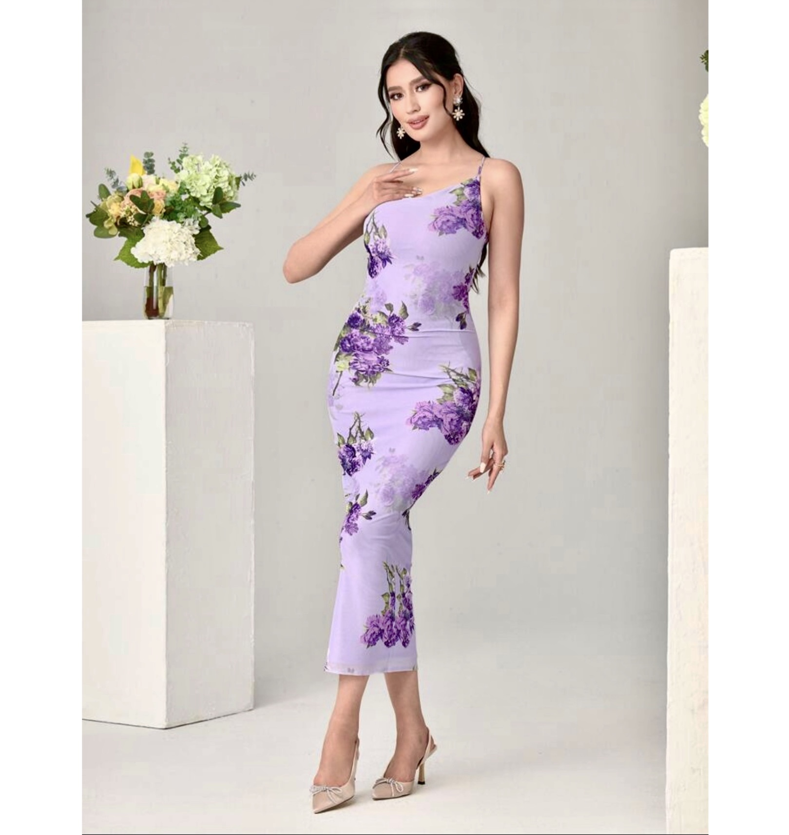 • Luxurious lilac base adorned with hand-picked floral prints in rich purple hues