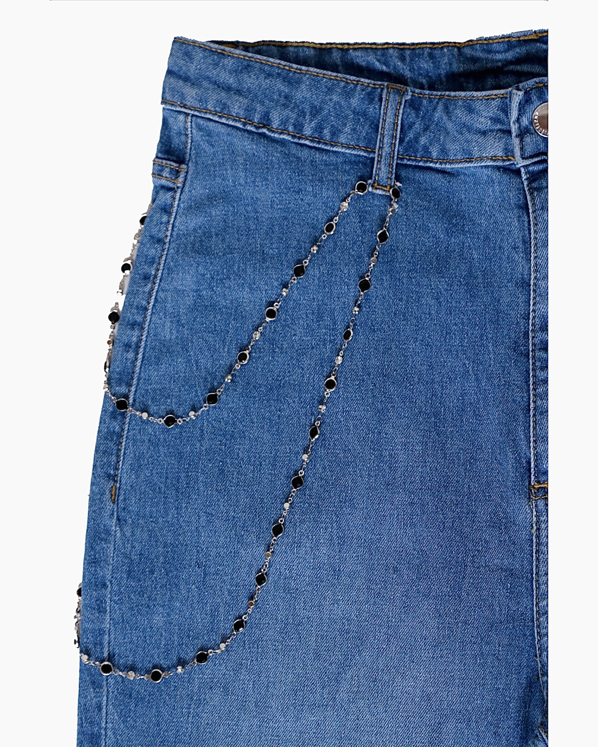 #chain #embellishment #jeans #flared #denim #blue